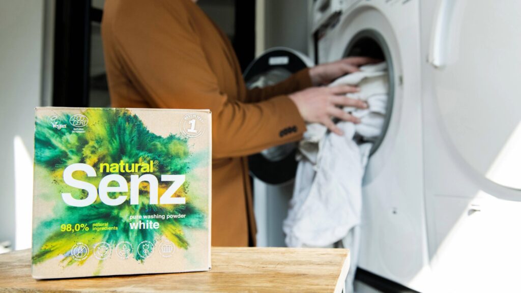 Poeder, zoals NaturalSenz, reinigt diep in de vezel en pakt geurtjes effectief aan, ook op lagere temperaturen.
